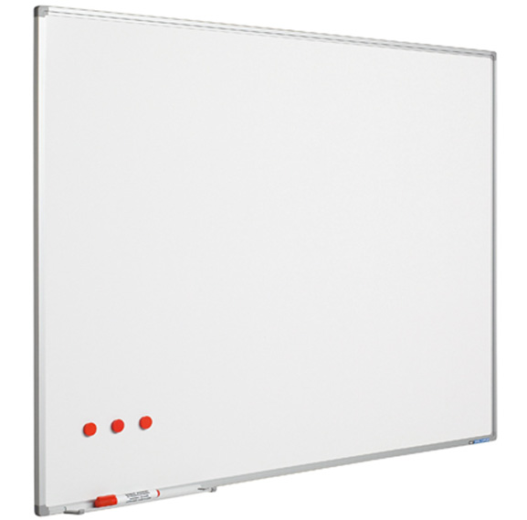 Бяла дъска за интензивна и постоянна употреба. Профил от анодизиран алуминий със сиви ъгли. Включва монтажния материал и 30 см. тава за маркери.
