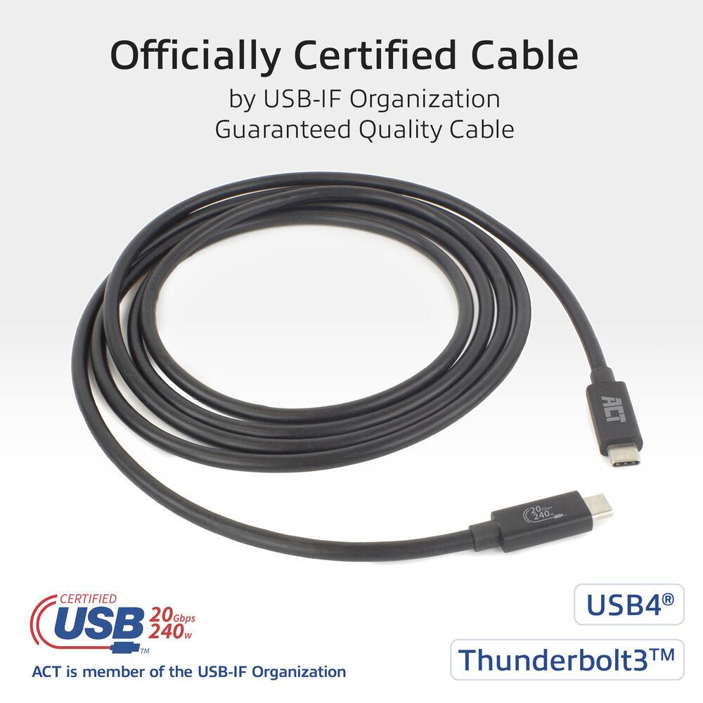 ACT Кабел USB-C – USB-C, 2 м / USB4, 20Gbps, 240W, сертифициран USB-IF