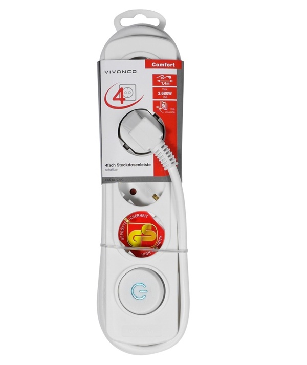 Vivanco 37645 Разклонител с 4 гнезда шуко с ключ 2,5 м