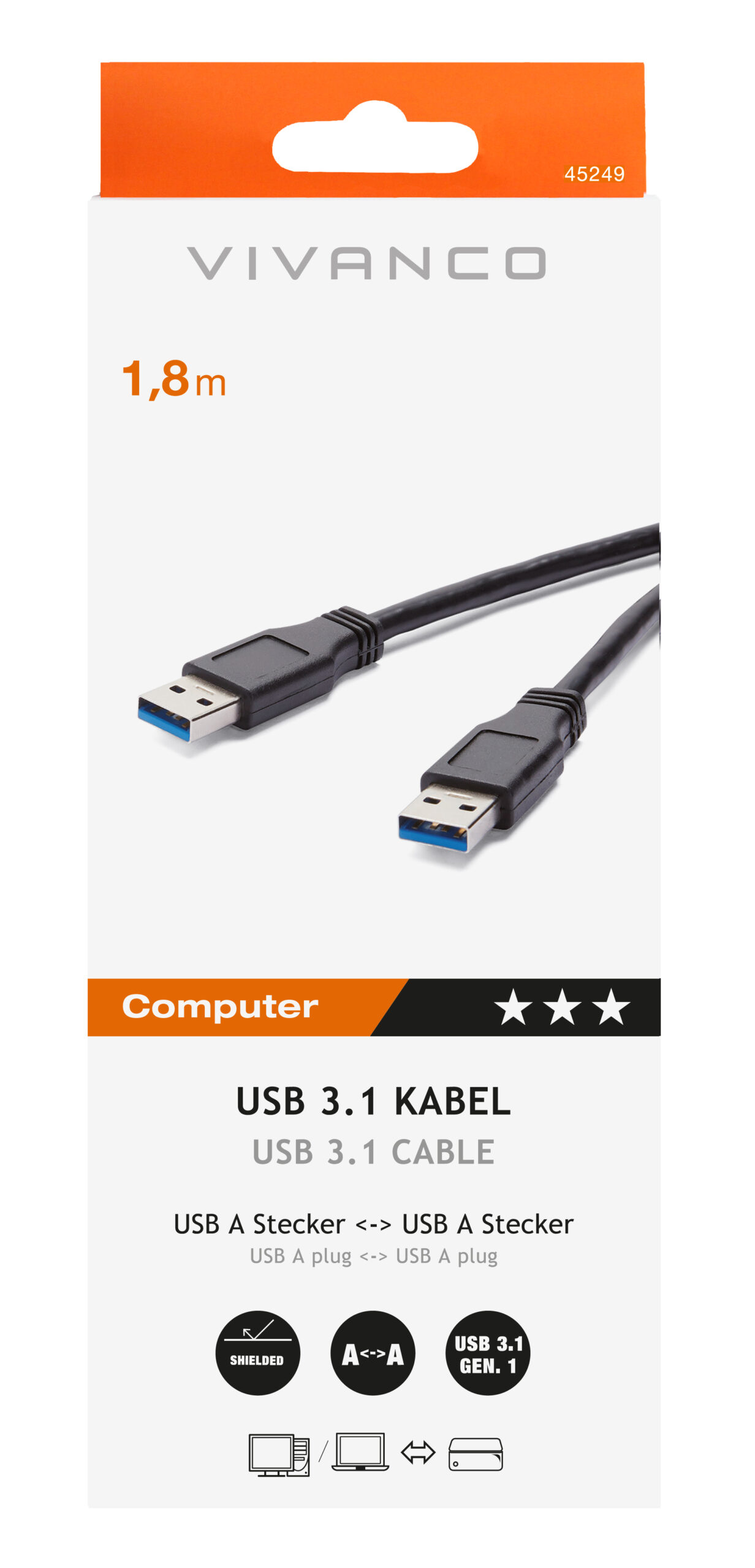 Vivanco 45249 Кабел USB 3.1- 1,8m