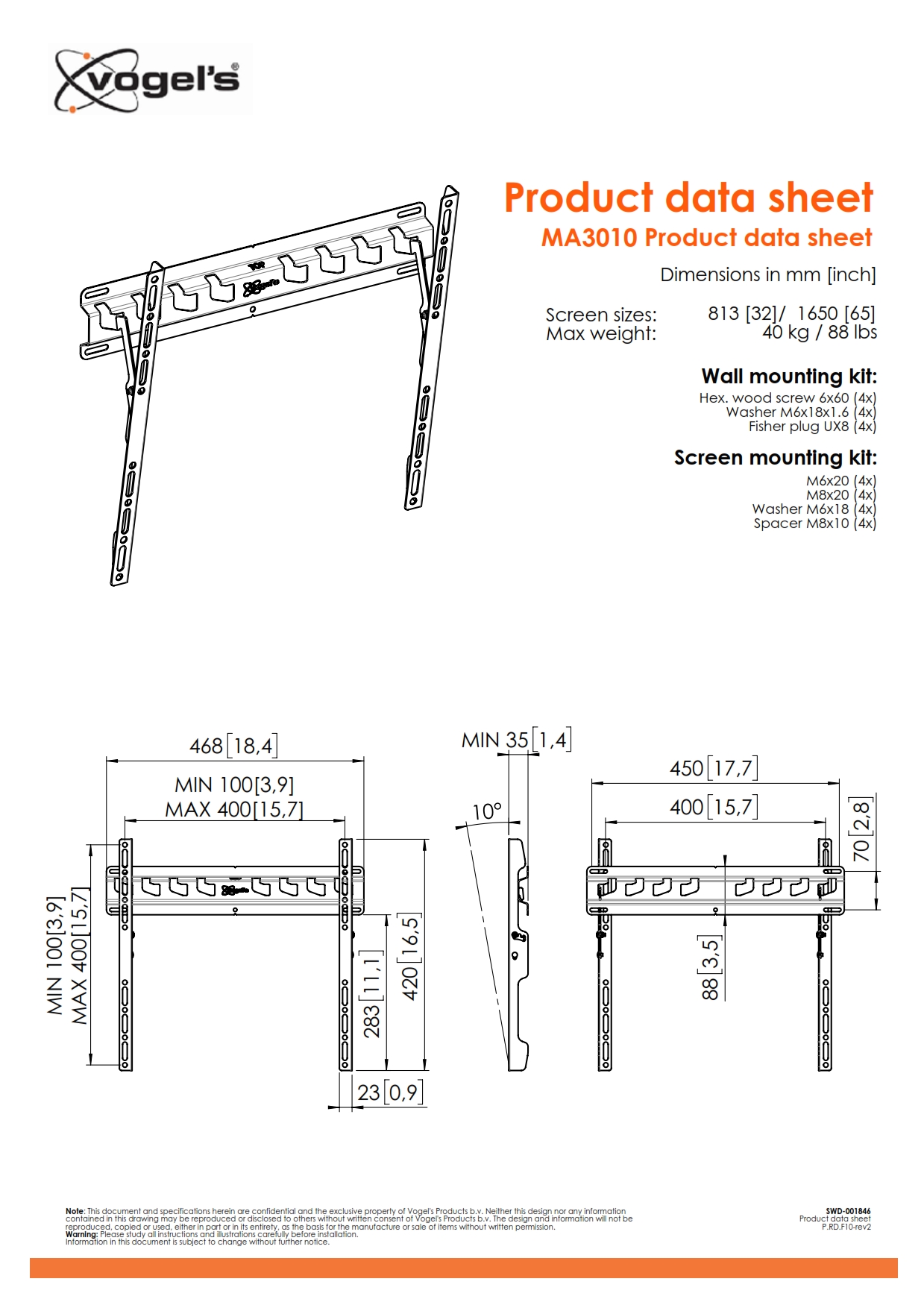 Vogel’s MA3010 Стойка за стена за LED/LCD с размер 32"- 65" с наклон 10°