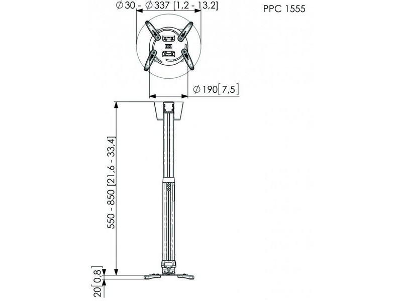 Vogel’s PPC 1555 поставка за проектор до 20 кг с възможност за регулиране на разстоянието до тавана от 57 см до 87 см